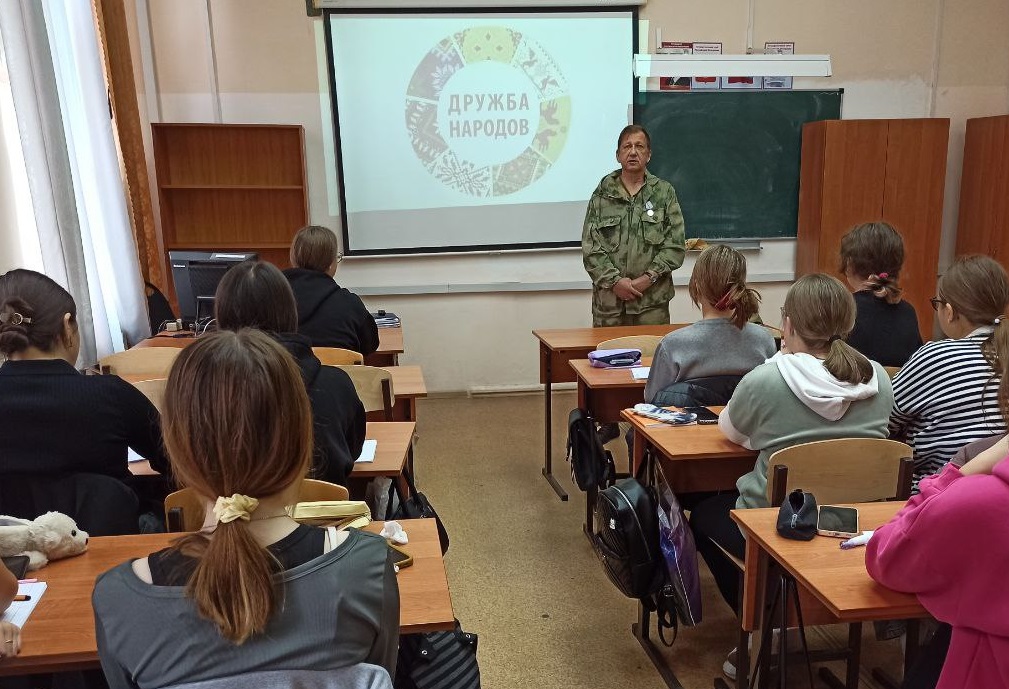 11 сентября в рамках Дня дружбы народов в колледже прошла профилактическая лекция о межнациональной дружбе, многообразии и уникальности народных культур, сплоченности, братстве и единении всех народов. На мероприятие был приглашен участник СВО, командир мед. взвода 28 мотострелкового полка Титяпов В.Е.