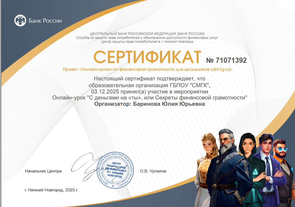 В декабре 2025 года в колледже проходят мероприятия по повышению финансовой грамотности в рамках проекта Центрального Банка Российской Федерации.