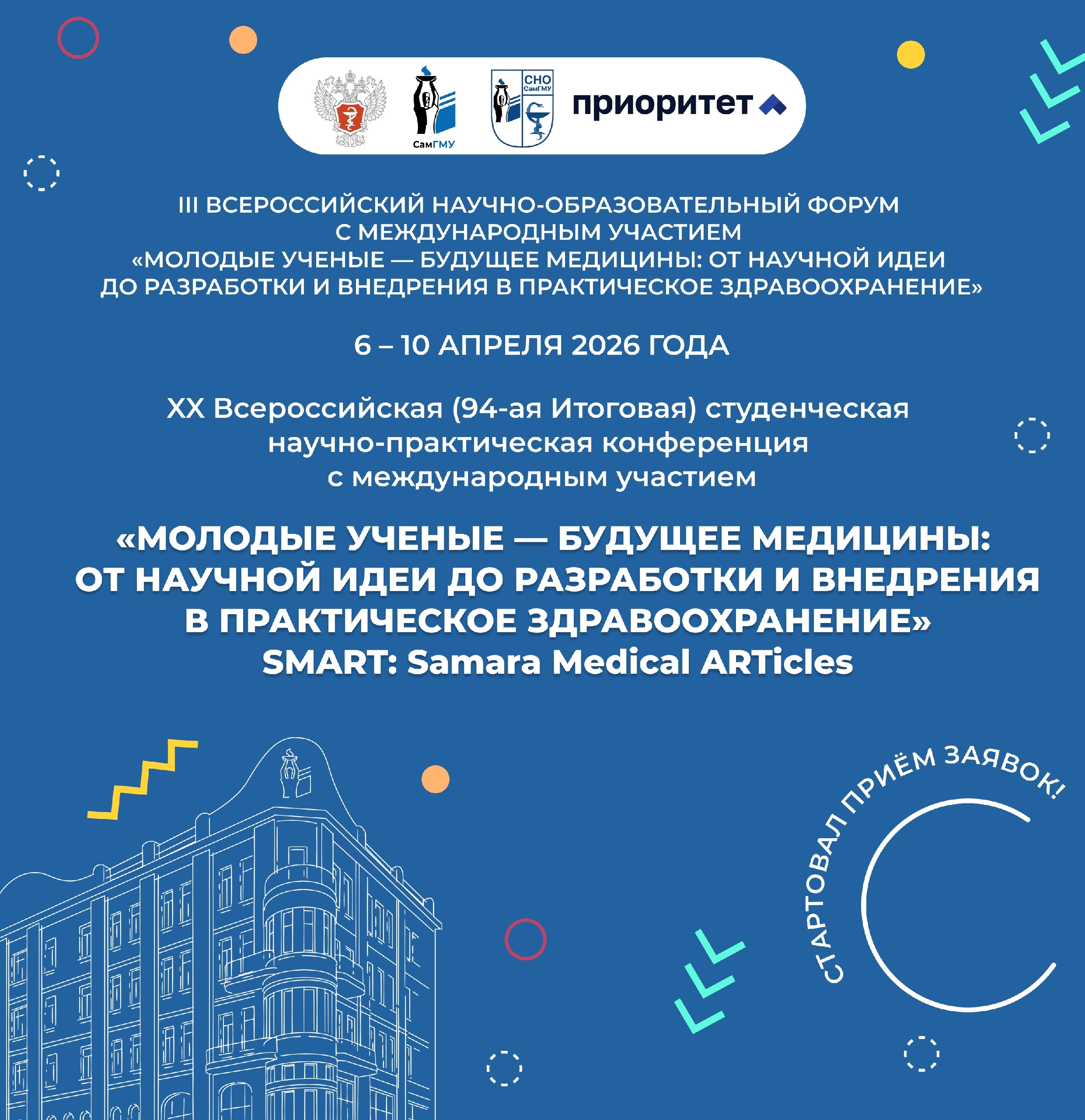 6-10 апреля в Самарском государственном медицинском университете прошла XX Всероссийская (94-я Итоговая) студенческая научно-практическая конференция c международным участием «Молодые учёные: от научной идеи до разработки и внедрения в практическое здравоохранение».