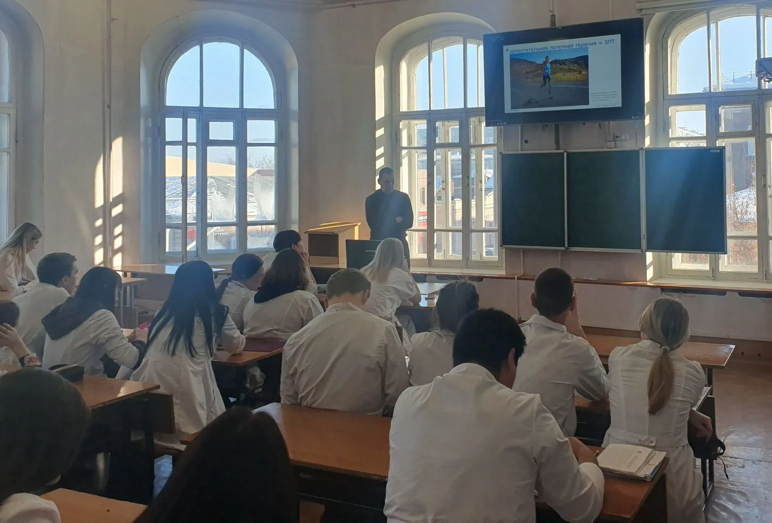 Особую актуальность эта тема приобретает, когда мы говорим о таких специфических и, к сожалению, порой неизбежных областях медицины, как заместительная почечная терапия. Для наших выпускных групп был приготовлен особый сюрприз: мы пригласили представителя обособленного подразделения Диализный центр г. Сызрань, главного врача Емакаева Александра Николаевича.