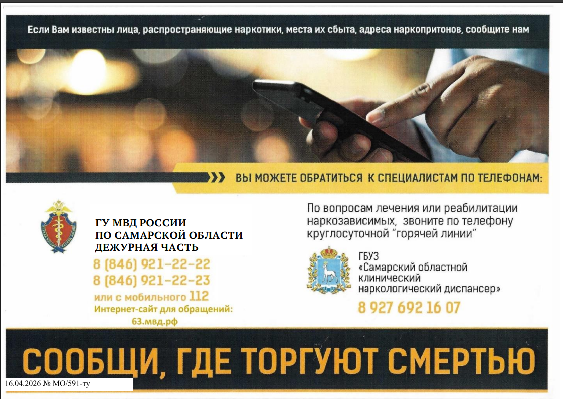 В период с 20 апреля по 1 мая 2026 года на территории Самарской области стартует первый этап общероссийской акции «Сообщи, где торгуют смертью»