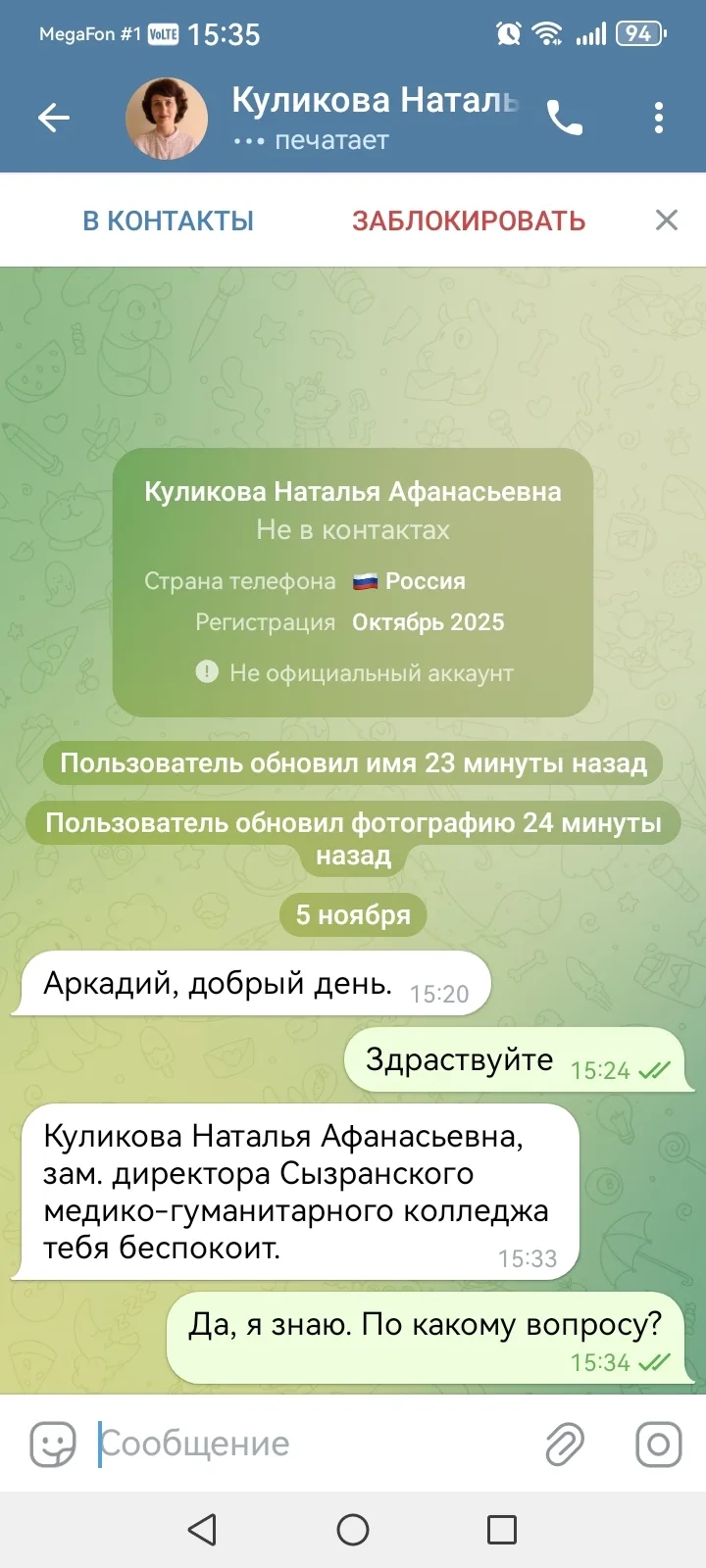 Как это происходит? Мошенники создают поддельные аккаунты в мессенджерах и социальных сетях с фотографиями и именами сотрудников колледжа.