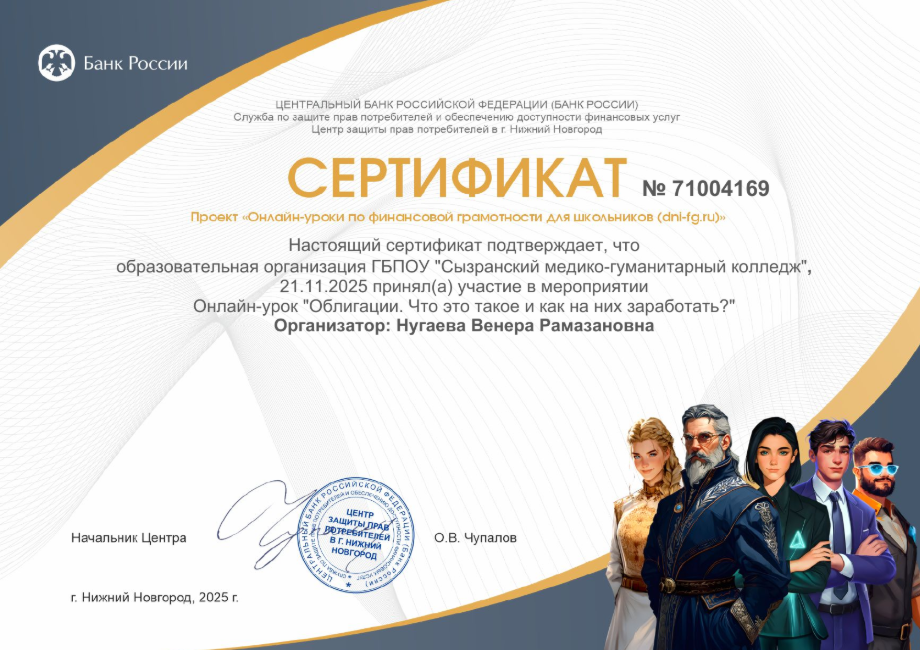 В ГБПОУ «СМГК» прошла осенняя сессия онлайн-проекта Банка России по повышению финансовой грамотности.