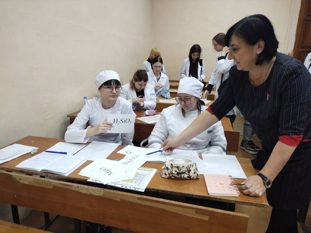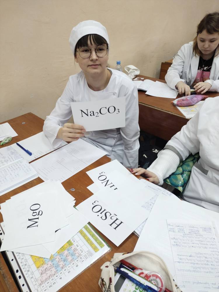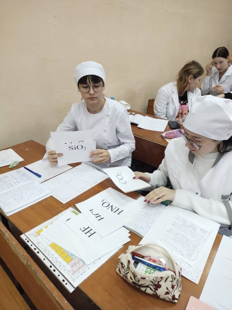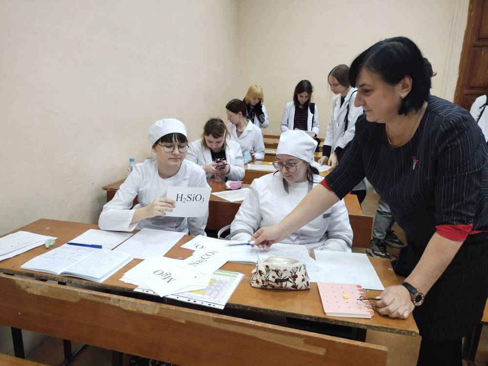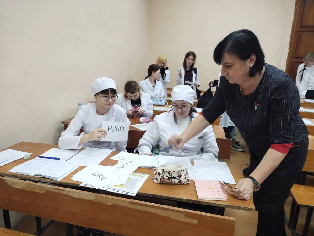 05.12.2023 преодаватель химии Захарова С.Г. провела открытое учебное занятие в группе 121 специальности «Сестринское дело» по теме «Основные классы неорганических веществ» с применением игровой технологии.