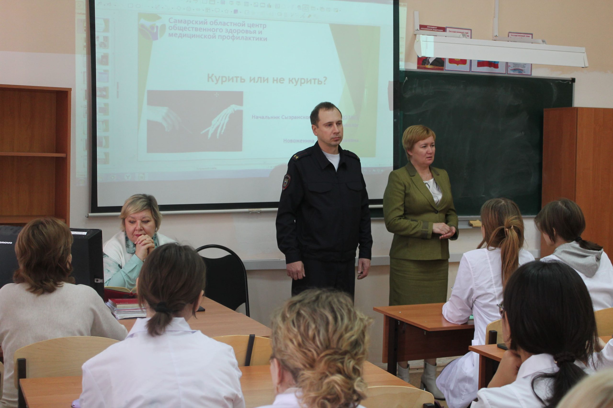 Председатель Общественного совета при МУ МВД России «Сызранское» Наталья Киреева вместе с будущими медиками обсудила социальный аспект преступлений в сфере незаконного оборота наркотиков.