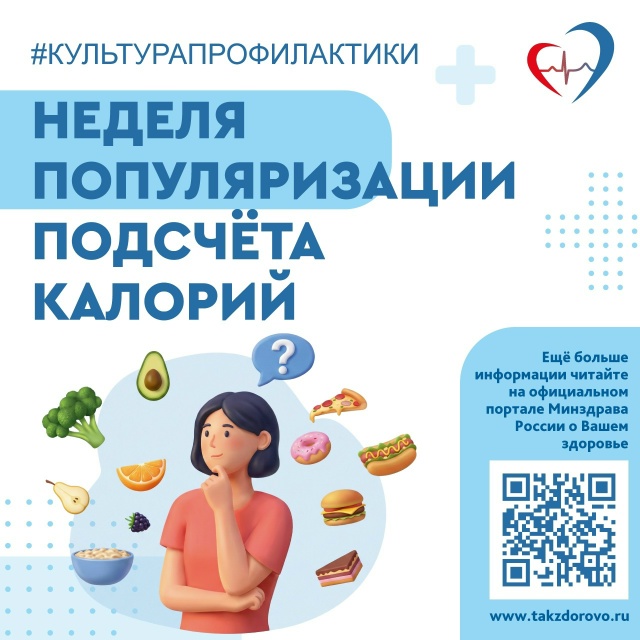 В рамках реализации плана проведения региональных тематических мероприятий по профилактике заболеваний и поддержке здорового образа жизни с 19 по 25 января 2026 года проводится Неделя популяризации подсчета калорий.